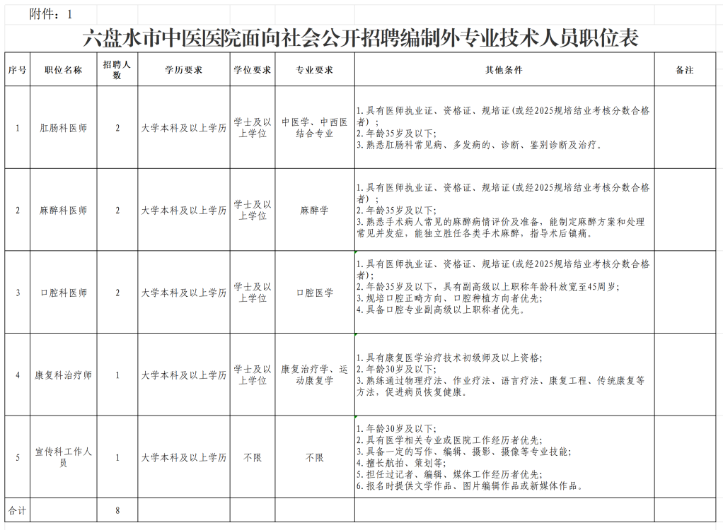 附件1六盘水市市中医医院面向社会公开招聘编制外放射科执业医师职位表.xlsx