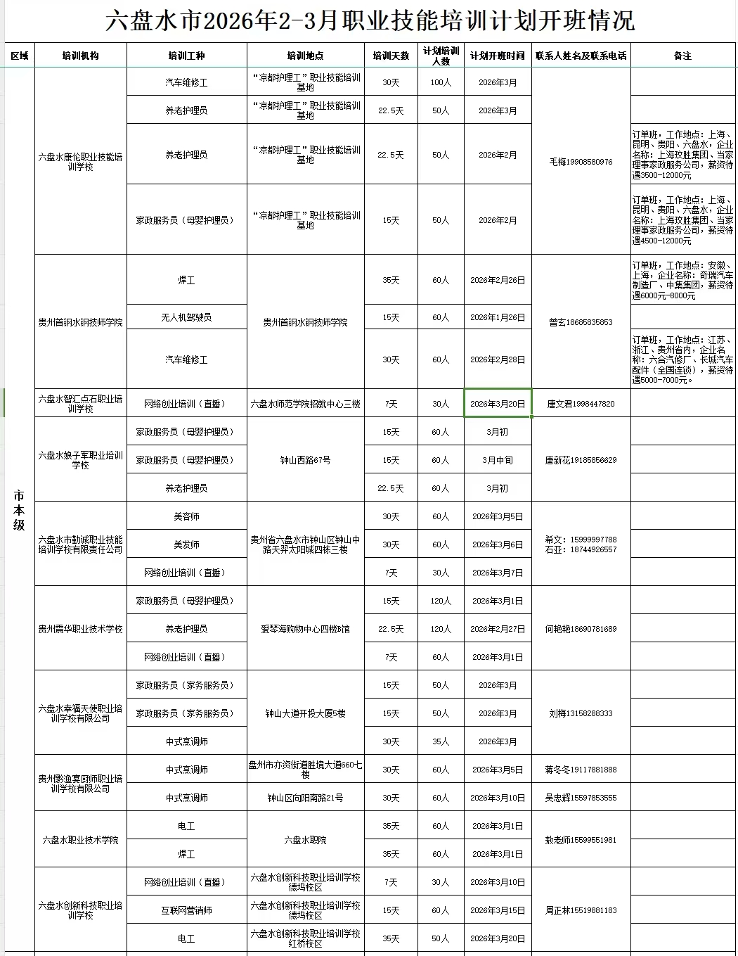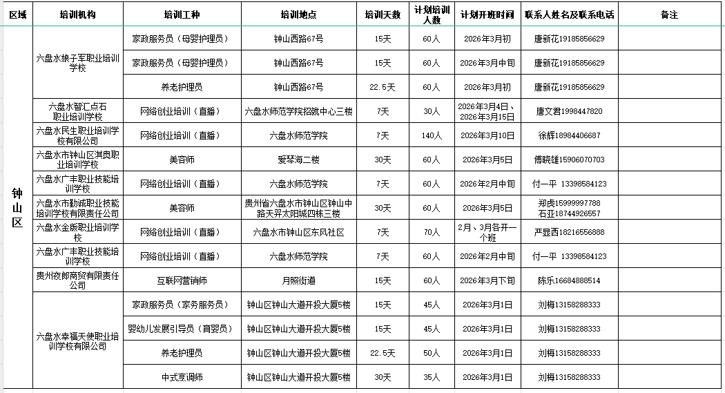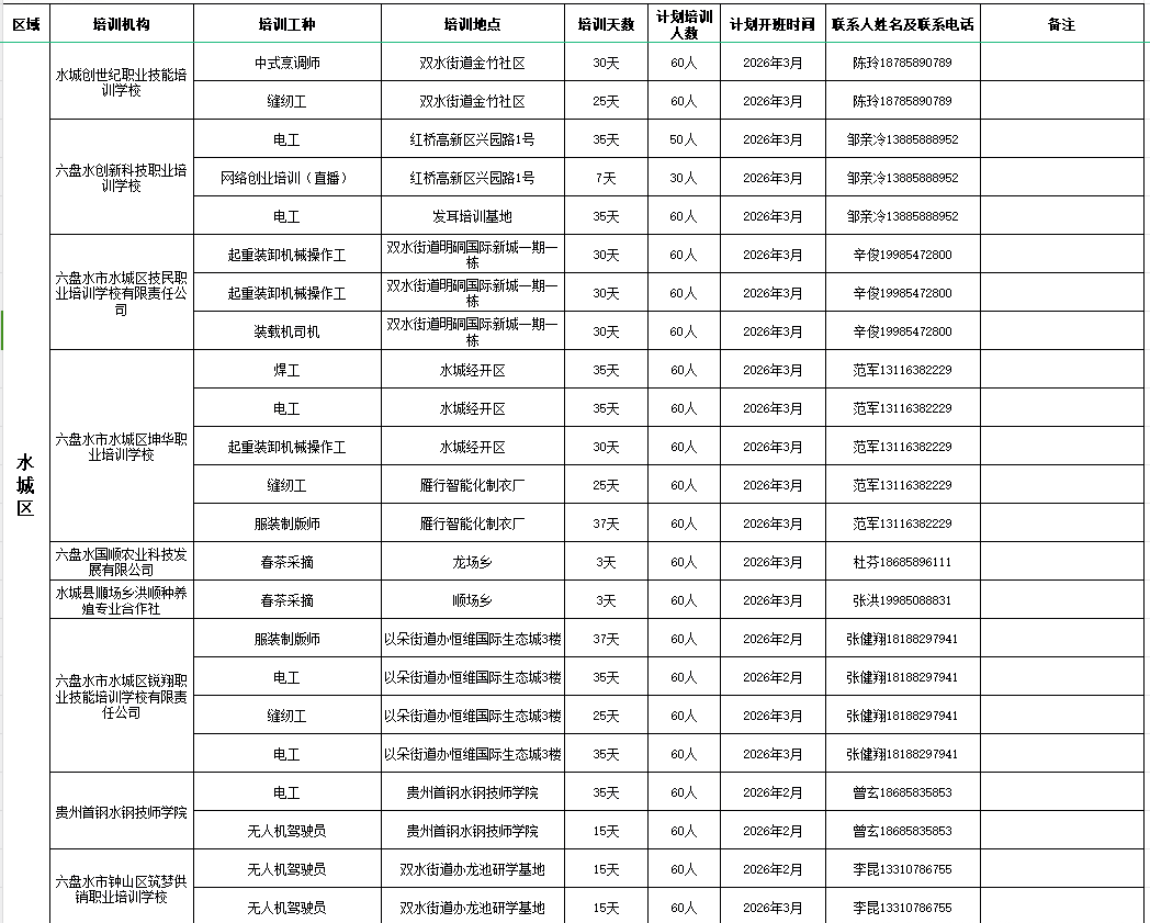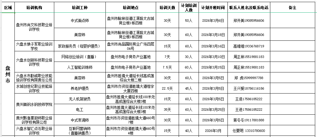 > 六盘水市2026年2-3月职业技能培训计划开班情况