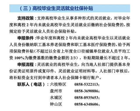 > 高校毕业生灵活就业社保补贴