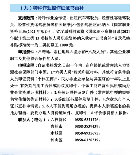 特种作业操作证证书直补