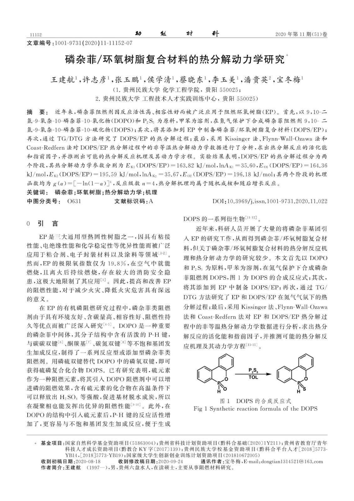 项目描述:新型阻燃环氧树脂复合材料的热降解行为及阻燃性能研究